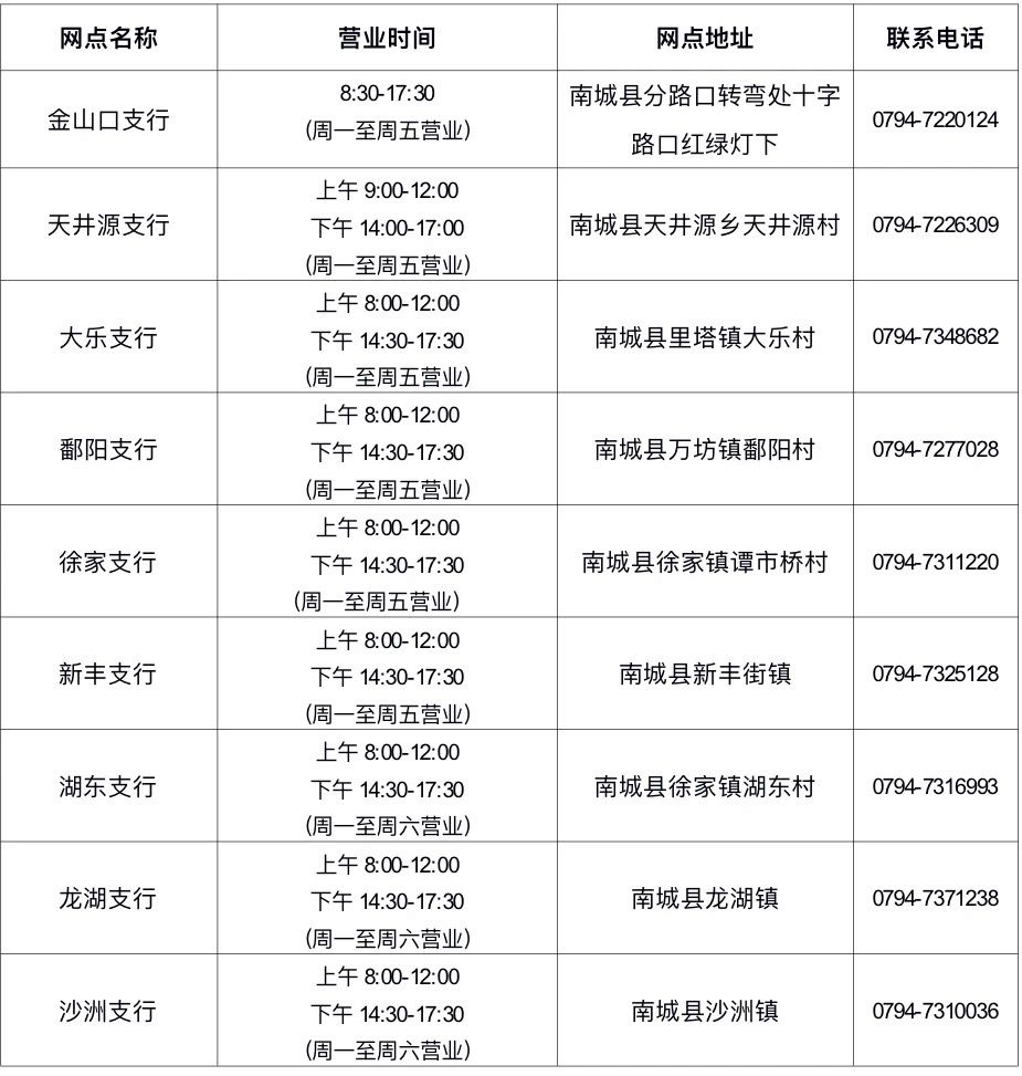为科学合理运用服务资源,进一步优化网点资源配置。自2025年4月12日起,南城农商银行辖内部分网点营业时间将进行调整。现就有关事项公告如下,敬请广大客户相互告知,本行辖内其他支行营业时间不变,给您带来不便,敬请谅解。